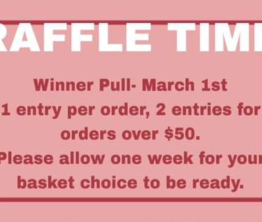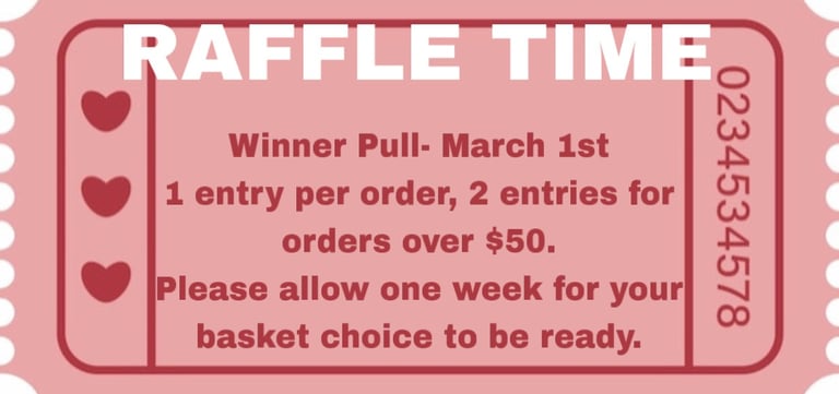 In honor of love month and my birthday (Feb. 29), for every order placed in the month of February you'll receive one raffle entry (with an additional entry for orders over $50)! You will have your choice of a winner basket, with each option including a coffee mug and discount code.